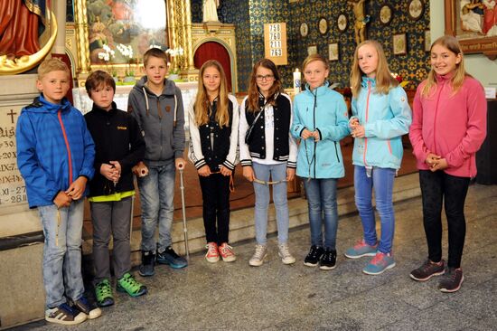 Am Mittwoch, 16. Mai 2018 durften in der Maiandacht die 4. Klässler ihre selbstgefertigten Rosenkränze von Johannes Epp segnen lassen.