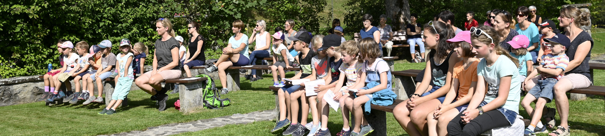 Dort feierten sie im Freien mit Johannes Epp den Gottesdienst, der von der Familiengottesdienstgruppe zum Thema „Bärenstark“ vorbereitet wurde. Musikalisch begleitet wurde die Feier von Flöten- und Hackbrettklängen.