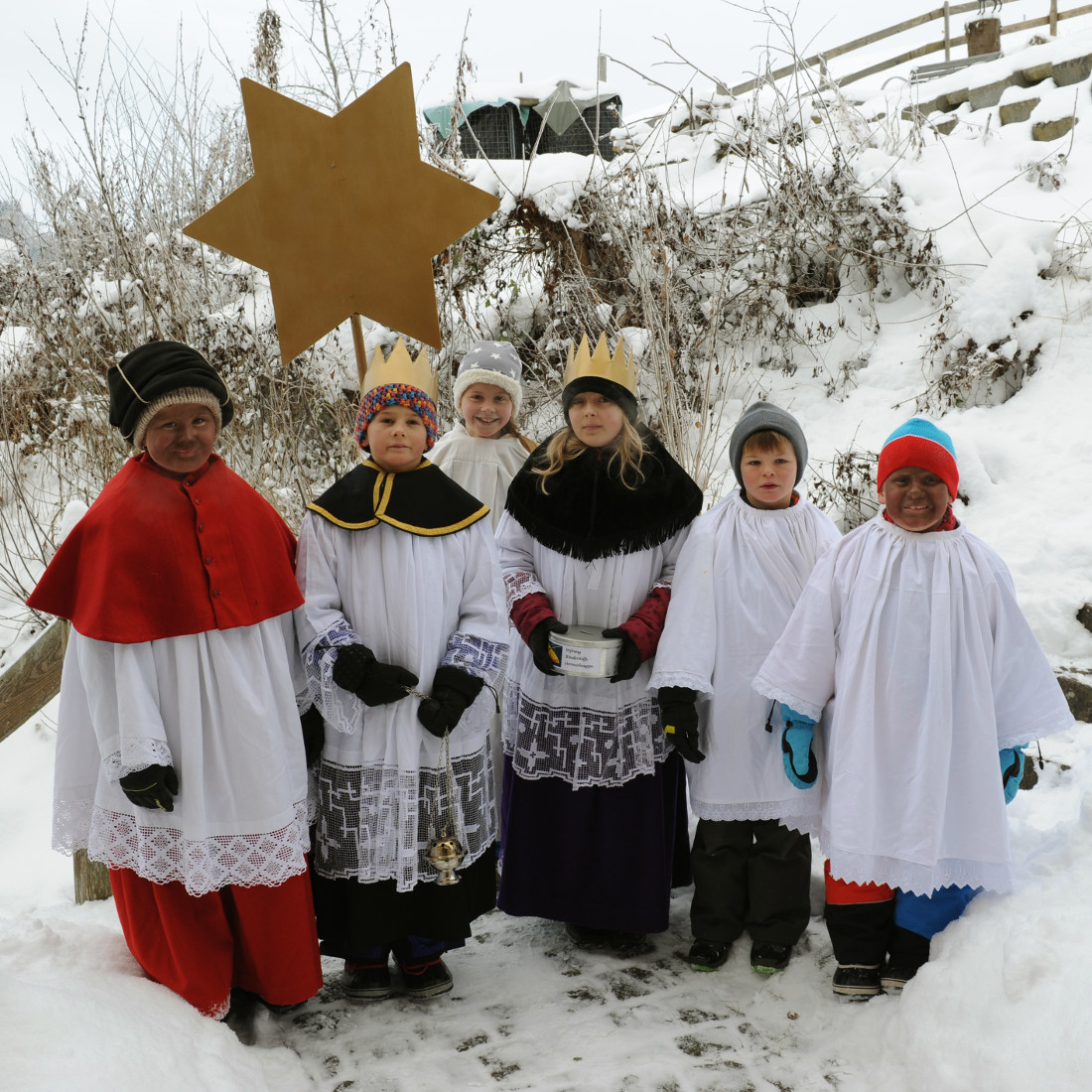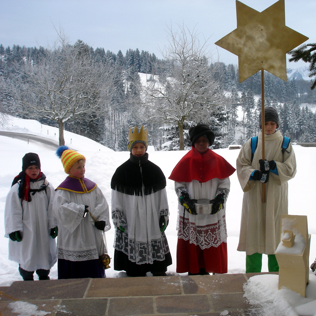 Über 40 Mädchen und Buben waren am Samstag in sieben Gruppen als Sternsinger im Bezirk Schlatt-Haslen unterwegs. Sie gingen von Haus zu Haus und schrieben mit gesegneter Kreide die Buchstaben „C+M+B“ auf die Türbalken, was für den Satz steht „Christus segne dieses Haus“ – oder auf lateinisch „Christus mansionem benedicat“. Gleichzeitig sammelten die Kinder Geld: Zum einen für die offizielle Sternsingeraktion, welche dieses Jahr unter dem Leitgedanken „Gemeinsam für Gottes Schöpfung in Kenia und weltweit“ steht. Zum anderen geht ein Teil des Erlöses an die Aktion „Sternschnuppe“. Diese erfüllt kranken Kindern spezielle Wünsche. Die Sammlung ergab die beachtliche Summe von über Fr. 3‘300.--. Darauf dürfen die Mädchen und Buben stolz sein. Zum Abschluss des Sternsingens fand ein gemeinsamer Gottesdienst in der Kirche Haslen statt. Pastoralassistent Johannes Epp lobte dabei den Einsatz der Sternsinger, die damit anderen Kindern ein Stück Lebensfreude und Hoffnung bringen.