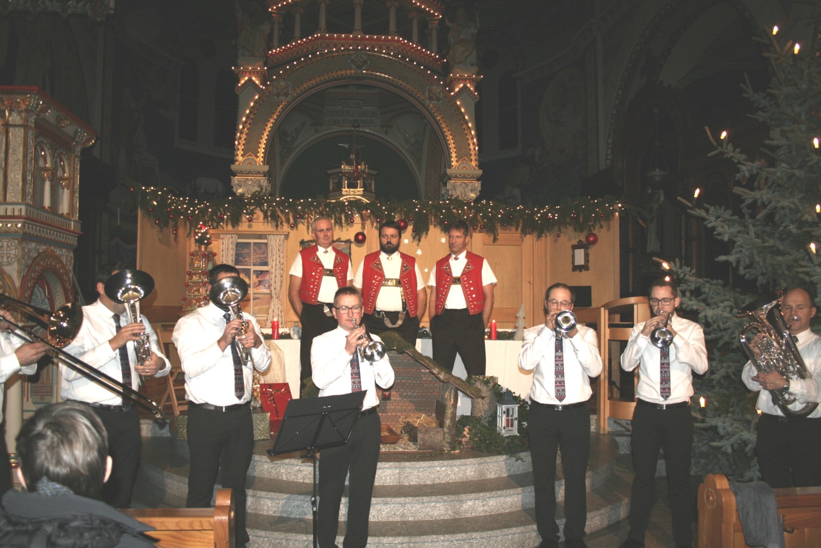 Die Akteure erzählten dem Publikum, wie es sich anfühlte, im Sommer im Tonstudio Advents- und Weihnachtslieder zu spielen beziehungsweise zu singen. Um in Stimmung zu kommen, nahmen sie Chrömli mit, verliehen dem Aufnahmeraum einen Weihnachtsduft und stellten sogar einen Christbaum auf – halt einen künstlichen, verriet einer der Musikanten. Überhaupt nichts gekünstelt war an der CD-Taufe. Die Kirche Maria Hilf in Haslen erstrahlte in einem weihnächtlichen Glanze. Was im Vorfeld versprochen wurde, erfüllte sich. Als Zuhörer konnte man wunderbare Melodien und Gesänge geniessen, sich eine Auszeit gönnen, herunterfahren und über eine Stunde lang der Hektik des Vorweihnachtsstresses entrinnen. Die beiden Formationen boten einen gelungenen Querschnitt aus der CD, die 19 Lieder umfasst. Die Stegräfler eröffneten das Konzert auf der Empore spielend mit „Tochter Zion“ und „Still, weil’s Kindlein schlafen will“, die Säntis-Jodler setzten nach mit dem „Christbaum Jödeli“. Zu hören waren weitere musikalische und gesangliche Leckerbissen wie der „Andachtsjodler“, das fetzige „All I want for Christmas is you“, „In the black midwinter“ sowie „s’Lämpli Zäuerli“ oder „Süsser die Glocken nie klingen“, bei dem die hellen und klaren Stimmen der Säntis-Jodler voll zum Tragen kamen. Auf der CD sind weitere bekannte und beliebte Titel zu finden wie „Feliz Navidad“, „Jingle Bells“ oder „Alle Jahre wieder“.